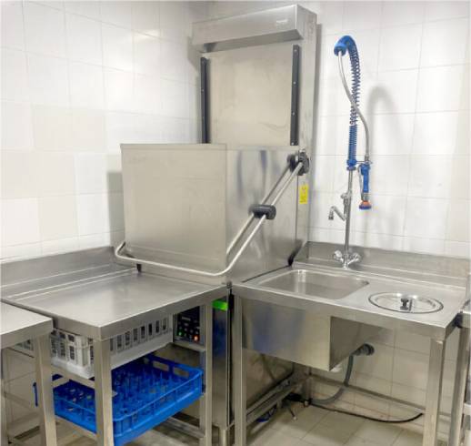 Instalación de zona de lavado con sistema EPS, reduciendo significativamente el consumo energético y optimizando el rendimiento del lavavajillas.